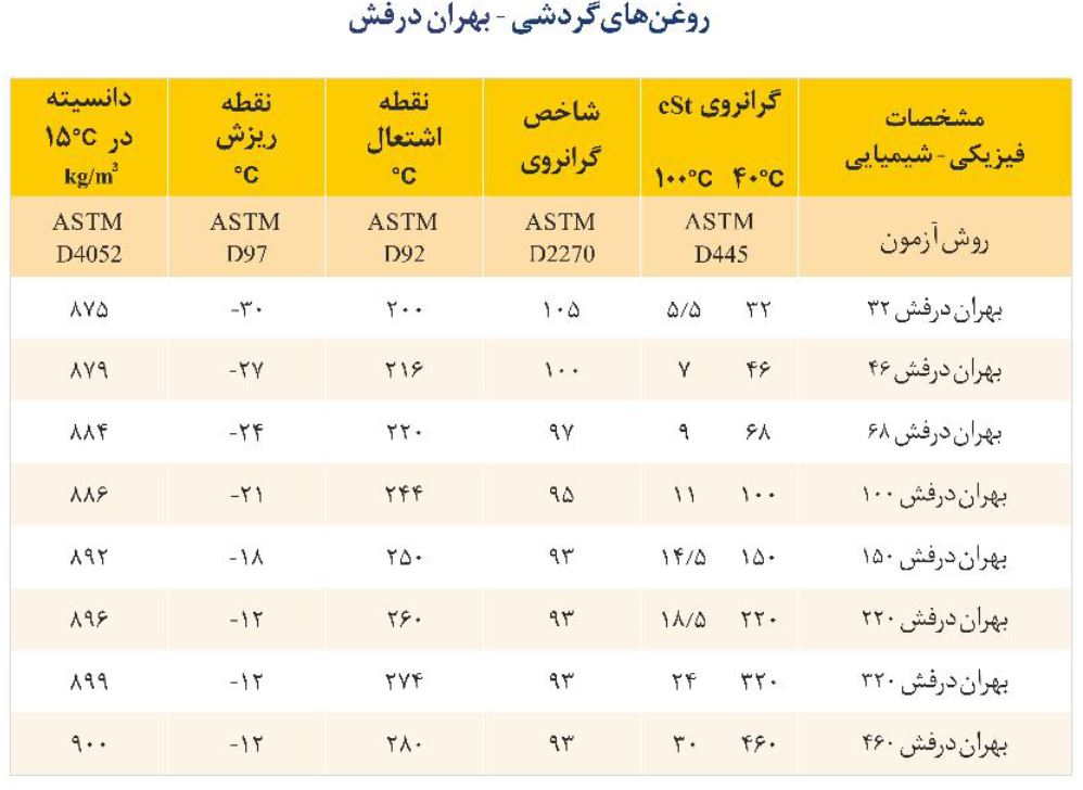 بهران درفش، روغن مناسب برای سیستم های گردشی و هیدرولیکی و برخی از انواع دنده های بسته، چرخ زنجیرها، یاتاقان های ساده و ضد اصطکاک، موتور پمپ های الکتریکی، دستگاه های نساجی و ابزار هایی که به روغن گردشی R&O ( با ماده افزودنی ضد زنگ و ضد اکسیداسیون ) نیاز دارند.