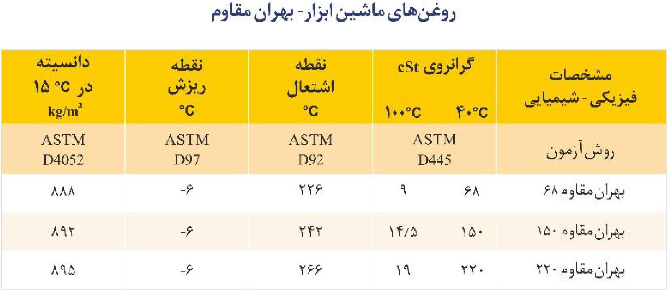 بهران مقاوم، روغن مخصوص روانکاری ماشین ابزار می باشد و استفاده از آن در مواردی که عدم پاشش روانکار مورد نظر باشد، پیشنهاد می شود.